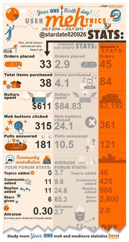 Get your personal meh-trics yet? Anything surprising? How do you compare to @snapster's stats?