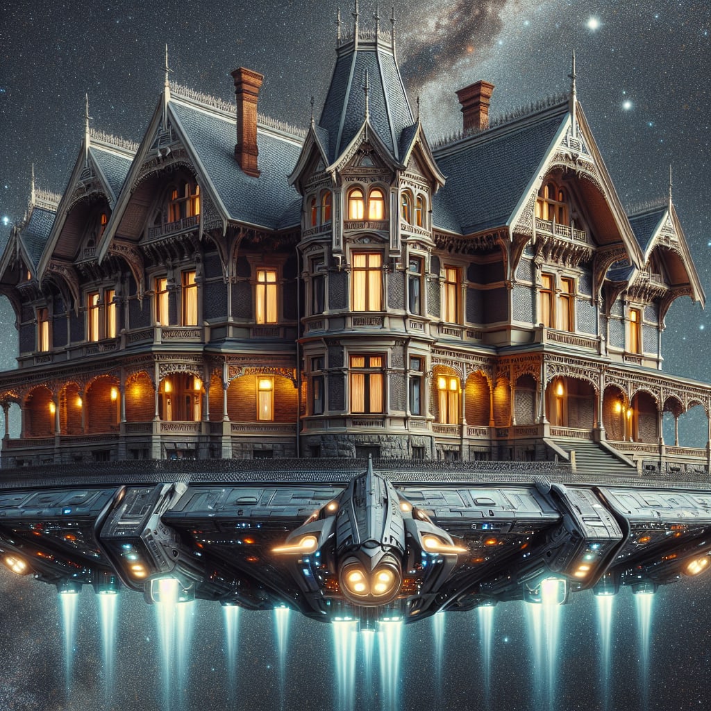 Massive Victorian mansion on a mountain top. Or a spaceship. One of those two.