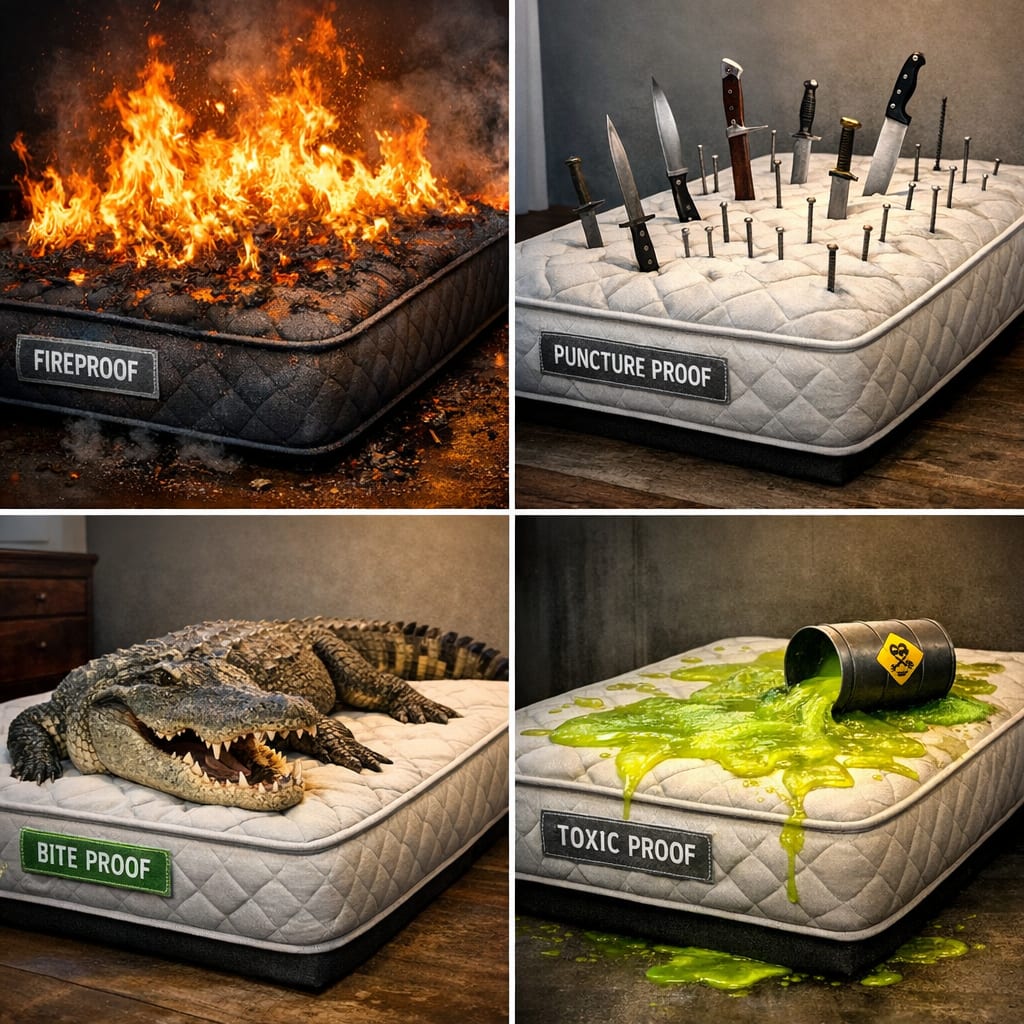 @zippyus Here’s the image you requested for “show me mattresses that are proof to unlikely things other than water”